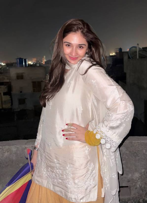 In the posts, Durefishan posed on a rooftop at night, wearing an elegant ivory outfit with delicate lace sleeves, paired with a mustard yellow dupatta that contrasted beautifully against the Lahore skyline. In another frame, she held a vibrant purple and green kite, a symbolic element of Basant celebrations, while a candid shot highlighted her stack of bright yellow bangles, nodding to traditional festival colors. The carousel was set to Patang Baaz Sajna Se by Fariha Pervez, a song closely associated with Basant nostalgia, adding an authentic festive vibe.