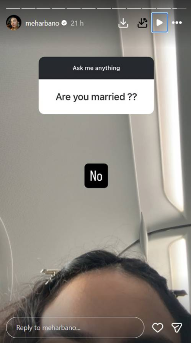 Pakistani actress Mehar Bano has finally addressed months of speculation about her personal life, confirming that she is not married. The actress shared this candid update during a lighthearted Instagram Q&A session, responding to a fan’s question about her marital status with a simple, “No.”