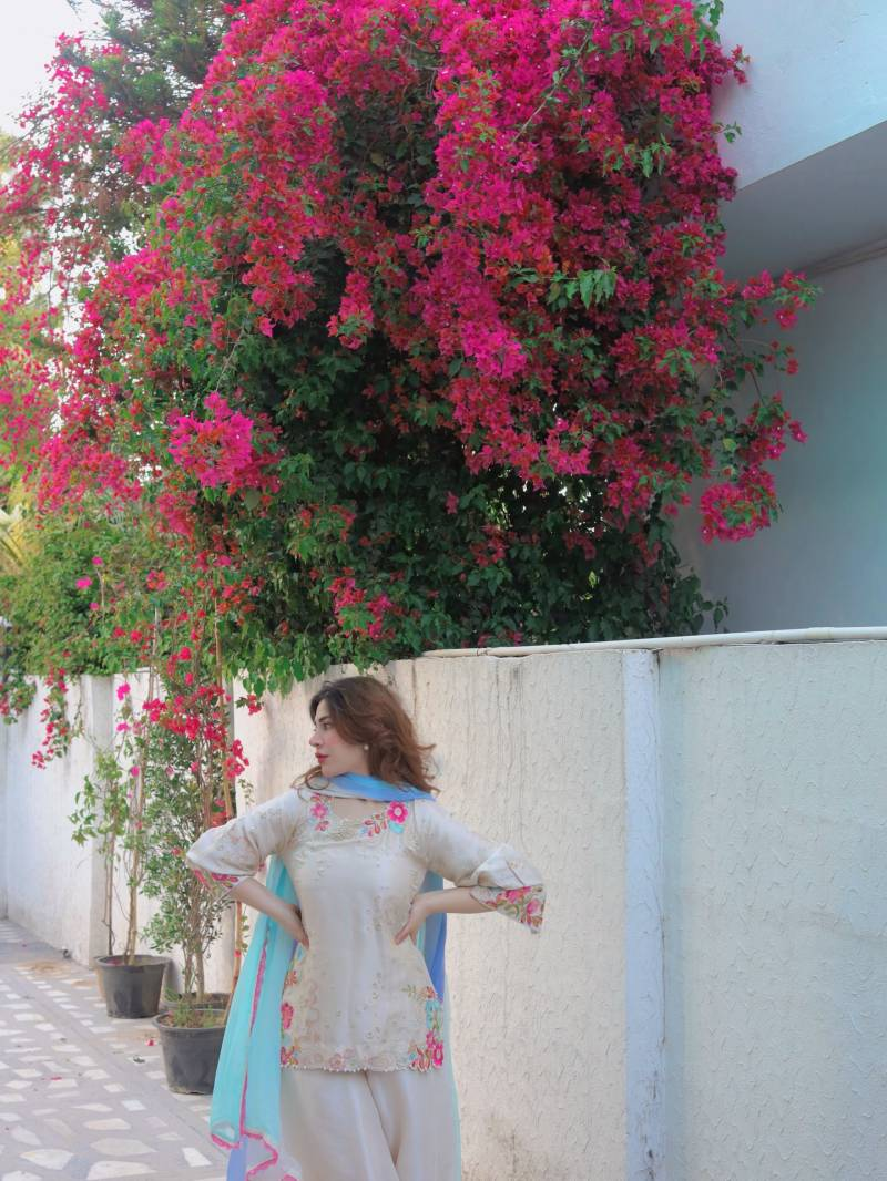 Pakistani actress and artist Naimal Khawar Khan has celebrated the arrival of spring in an elegant and visually captivating way. Sharing a series of posts on Instagram captioned “My favourite season is here,” she blends fashion, florals, and seasonal charm to create a serene and artistic narrative.